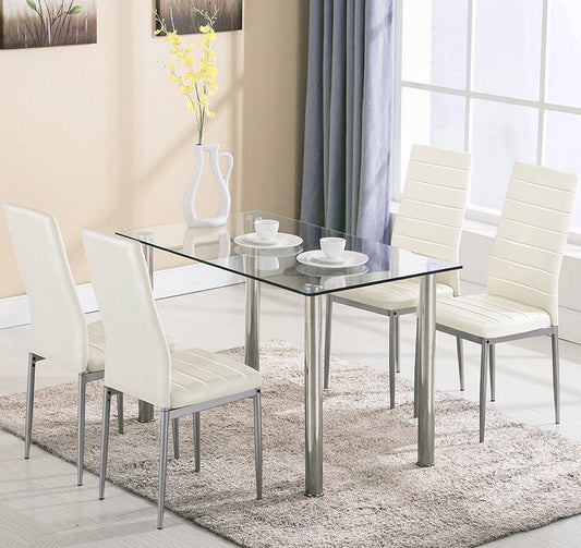 5 Piece Dining Table Set Dining Table & 4 Leather Chairs,Glass Top Kitchen Dining Room Furniture,White