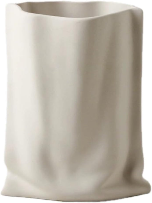 Creative Fold Paper Bag Ceramic Vase Handmade Ceramic Vase Living Room Bedroom Model Room Flower Arrangement Ornaments Jewelry (White)
