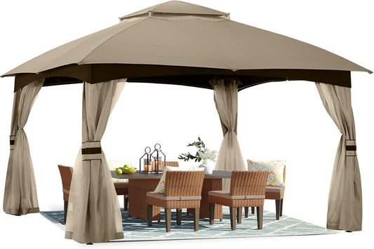10X12 Outdoor Gazebo - Patio Gazebo with Mosquito Netting, Outdoor Canopies for Shade and Rain for Lawn, Garden, Backyard & Deck (Khaki)