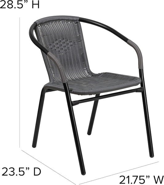 Set of 2 Modern Rattan Indoor/Outdoor Stack Chairs, Stacking Rattan Patio Chairs with Curved Back and Cross Bracing, Gray