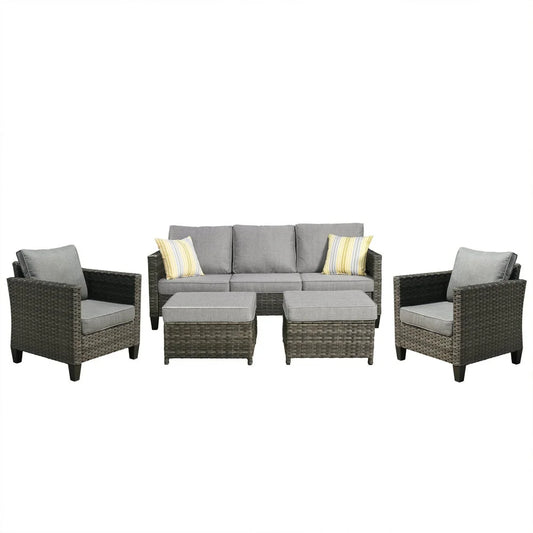 5 Pieces Outdoor Patio Furniture All-Weather Wicker Conversation Set outside Rattan Sectional Sofa with Cushions for Balcony