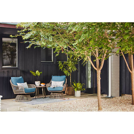 Killian 3 -Piece Wicker Patio Conversation Set with Blue Cushions