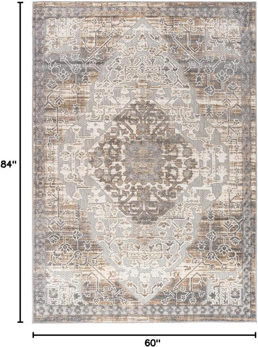 Distressed Traditional Indoor/Outdoor Area Rug 5' X 7' Beige